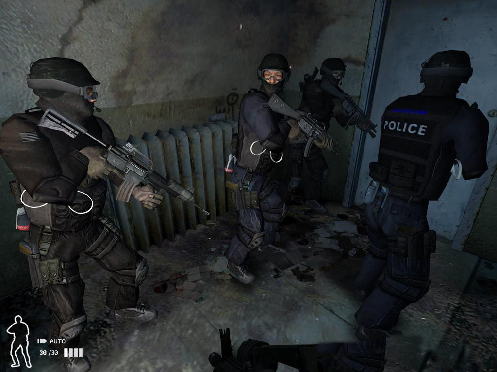 SWAT4は,撃って飛んで跳ねての"発奮系"FPSではなく,トム・クランシーシリーズの「レインボーシックス」のような"ほぼワンショットワンキル"の緊張感の中,容疑者の確保を目指すタクティカルアクション。前作「SWAT3」はゲームオブザイヤーを獲得するなど,名実共に"一級の特殊部隊ゲーム"として認知されている。