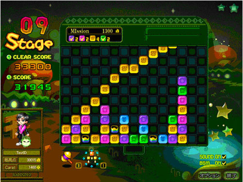 今回新たに追加された「モアモア」は,縦/横に同じ色のブロックを揃えて消していくという,シンプルなパズルゲーム。ステージごとに決められたスコアを達成すれば次のステージに進めるというシステムで,シングルプレイのみ対応している。 なお得られる得点は同じ色のブロックを多く集めてまとめて消すほど高くなり,またステージごとに設定されたミッションをクリアすることでも高ポイントを獲得できる。