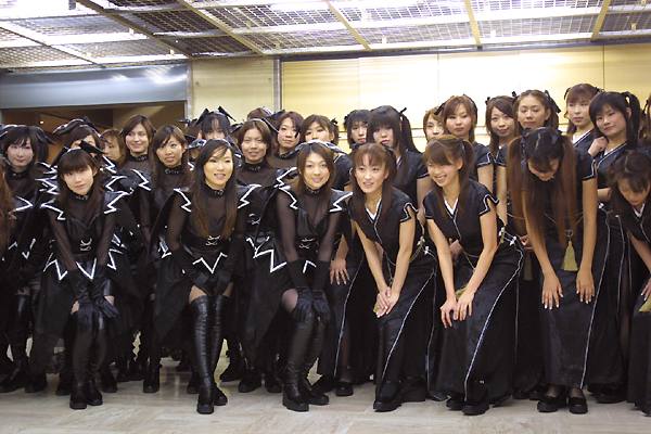 写真左:出撃前,50人が勢揃いしたマビノギガールズのみなさん。黒い,そして数が多いんですよとにかく