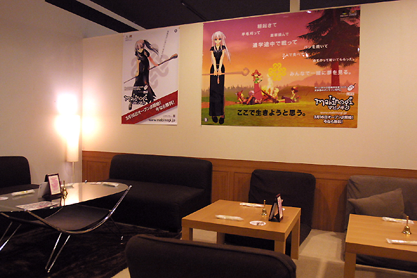 続いて,開催期間中に店内を徘徊するというナオ,サキュバス姿の店員さんが登場し,またも撮影タイムである。「サキュバスの羽をどう撮る?」とか,「ナオに何持ってもらおうか?」などと言いながら,こちらもつつがなく終了した。 どこかのタイミングで主催側が企画の内容と趣旨について説明してくれるものと思っていたところ,本日午前の部はこれにて終了だ。まあ,ここまでで予定どおり30分,正午にいったん解散であるから,無理からぬところかもしれない。 とはいえ,せっかくなので現地で確認できた情報をいくつか。当サイトの「こちら」でもお伝えした,店内で流されるマビノギの"オリジナルムービー"についてだが,これはゲーム内のオープニングムービーおよび,公式サイトで公開中のチュートリアルムービー「ロナとパン」の2種類をDVD-Videoの形にしたものとのこと。内容的に独自のものではないので,あくまでお店の雰囲気作りの一環として楽しみたいところ。 次に,各店舗の詳しい営業日について。「カフェメイリッシュ」での催しは3月21日までなので,この記事が載る頃にはすでに終了しているはずだ。残り2店舗については,