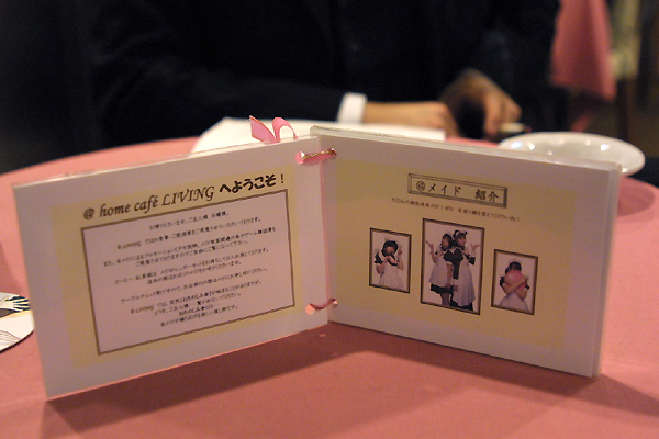 まずはマビノギカフェの様子から。取材といっても,マビノギカフェはカタギの衆がこれでもかと平和にお茶をしばく"メイド喫茶"のアレンジ版である。あまりズカズカと足を踏み入れるわけにもいかないらしい。報道陣が集められたのはドンキホーテ5階にある「@ほぉ〜むかふぇ」の取材専用スペース(普段はLIVINGと呼ばれるスペースとのこと),時刻は11時30分。 秋葉(あえてアキバとは書かない)歴も,違う方面でそれなりに長いと自負するPC関連出身の筆者だが,午前中に足を運んだことなぞ,まずない。しかも,物珍しさに店内の注意書きをしげしげと眺める限りでは,ここは店員さんが「ご主人様」「お嬢様」なる語を二人称代名詞として使う不思議な空間だ。