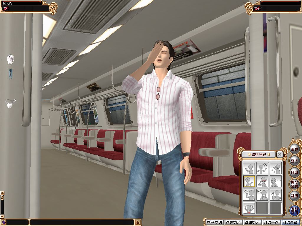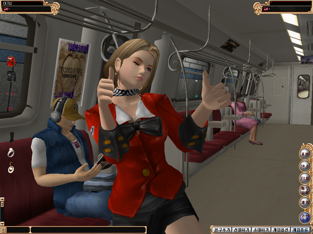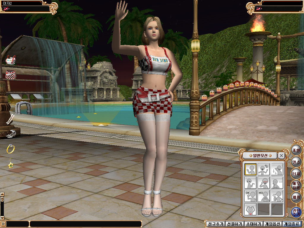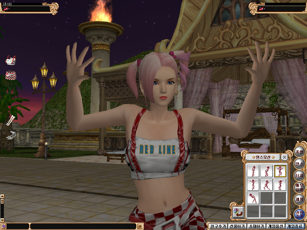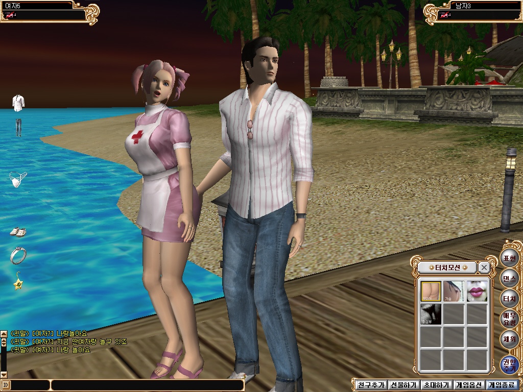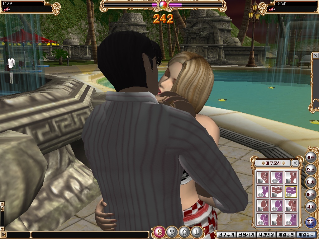 6・ゲームスタート ゲームが始まると,MMORPGと同様に,プレイヤーはマップ内のあちらこちらを移動できる。そしてそのルームに異性キャラクターが入ってくれば,まずは挨拶などの一般的なモーションやチャットで,コミュニケーションを図る。 ちなみに,相手を誘惑するためのセクシーなダンスモーションが用意されているうえ,そのダンス用のサウンドを選択することもできるようだ。