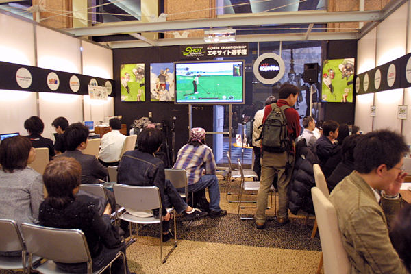 場所が恵比寿ガーデンプレイスということもあり,ギャラリー層がネットカフェやPCゲームショップなどで行われるゲームイベントとは異なっており,家族連れやカップルなどが目立っていた当日の会場。この日はショットオンライン未経験者も含む18名が参加した。 結果は,一人を除いて全員が"ニアピン賞"(グリーンにオンすればOK)を獲得。恵比寿ということもあってか,参加者の中にはどこかでビールを召し上がってきたらしいご機嫌の男性などもいたが,手ほどきを受けつつ見事ニアピン賞を獲得していた。4GamerスタッフのSeirouも参加してニアピン賞をいただいてきたので,景品を読者プレゼントとしたい(詳細は「こちら」をどうぞ)。