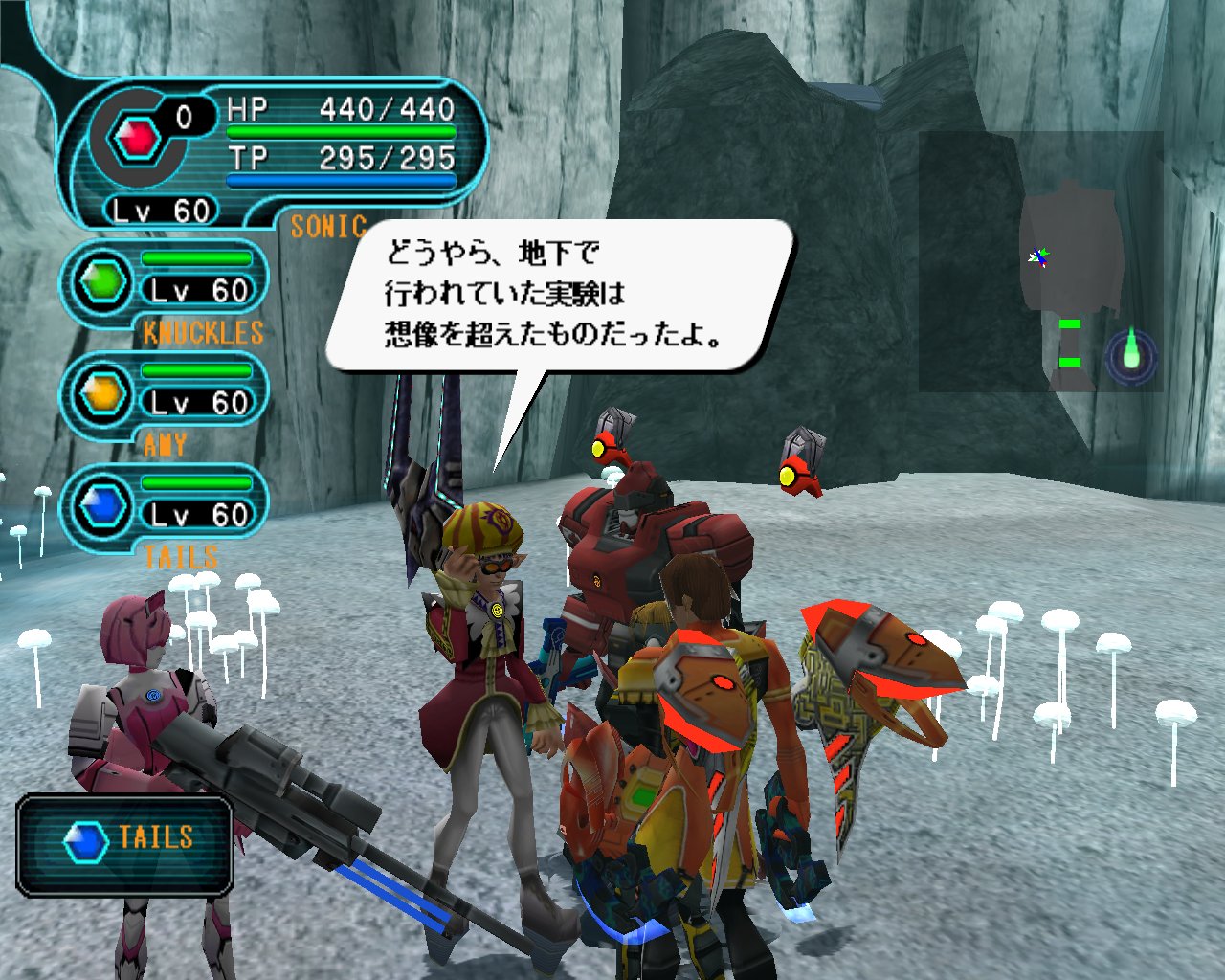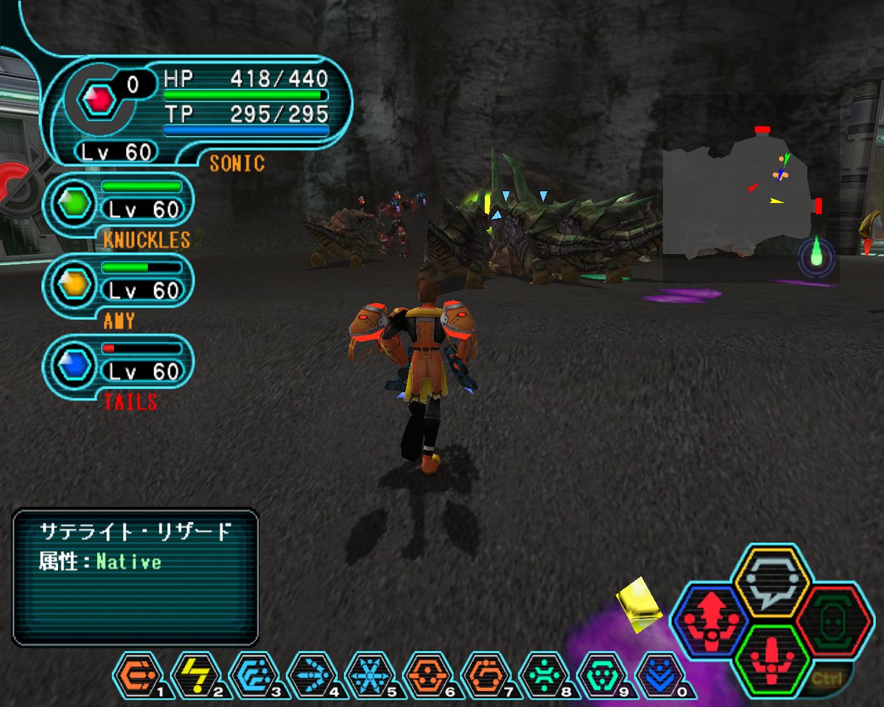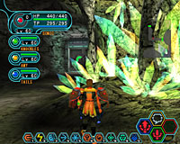 「9-7 深奥の遺伝」では,隕石の破片を採取するため,ハンター達が地下砂漠の最深部に向かうことになる。惑星ラグオルにおける一連の異変の原因は隕石にあると推測されており,その調査を進めるために隕石自体のサンプルが必要,というわけだ。 舞台となるのは,新たに追加される洞窟のマップで,水晶が散在する神秘的な場所とのこと。