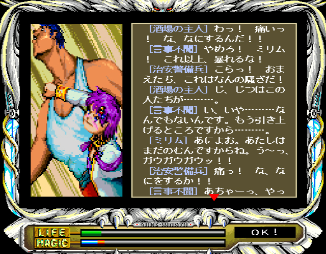 自由度に重点を置いたシステムになっており,用意されたテキスト量は,なんと同社のアドベンチャーゲーム「サイオブレード」よりも多かったと言われている。