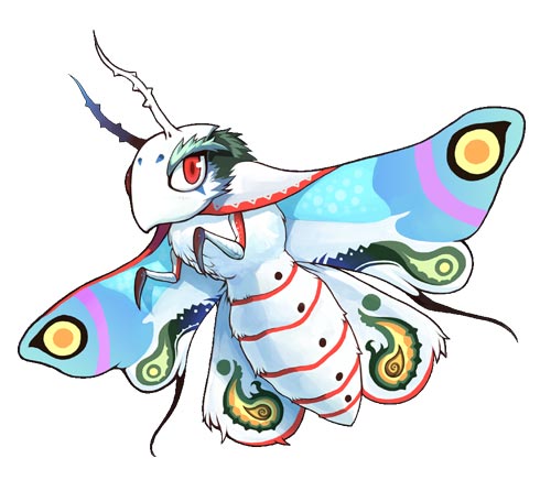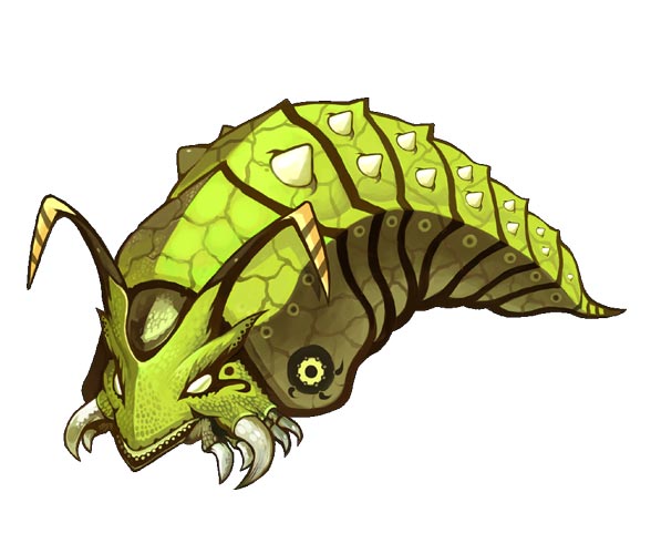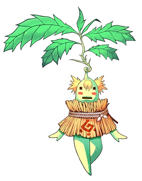 上段左から,洞窟内の苔や黄色いキノコを寝床にしている"コケビー",逆さま姿の吸血コウモリ"トビ",植物の胞子の形をした"ポンポン",青虫の姿で堅い外甲を持つ"スクワーム",人間の形をした植物モンスター"シムバタ",白い苔(moss)が生えている蛾(moth)のように見える"モスモス",真っ黒な毛を持つ熊"クム"