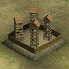 施設の画像も公開されたので,紹介しておこう。 まず上段左が,「商館」。これは建てておくことで金銭の収入が得られるうえ,商人との売買が可能になるという施設。上段中央は「門前町」で,この周囲には田畑や櫓を建設できる。さらに,僧侶が訪問しやすくなるという効果もあるとのこと。 上段右は,「兵舎」。ここでは募兵(読んで字のごとく,兵を募ること)ができる。下段左は「大筒工房」といい,やはりその名のとおり(シリーズファンにはお馴染みの強力兵器)大筒が製造可能となる。その右は「水軍学舎」で,ここでは水軍の技術を研究可能。そして下段右の画像は「櫓」で,これは接近した敵部隊に自動的に弓攻撃を行ってくれるという施設だ。
