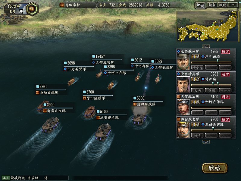 そのほか,いくつか最新画像が公開されているので,ここでまとめて紹介しておこう。 まずは,今川義元をはじめとする5人の武将画像。そして,海戦や攻城戦,さらには富士山が見られる6点の3Dマップ画面だ。 とくに3Dマップの画面からは,本作のさまざまなシステムが垣間見える。じっくりと見て,いろいろと想像して楽しむのは,"信長の野望発売2か月前"のお約束(?)だろう。