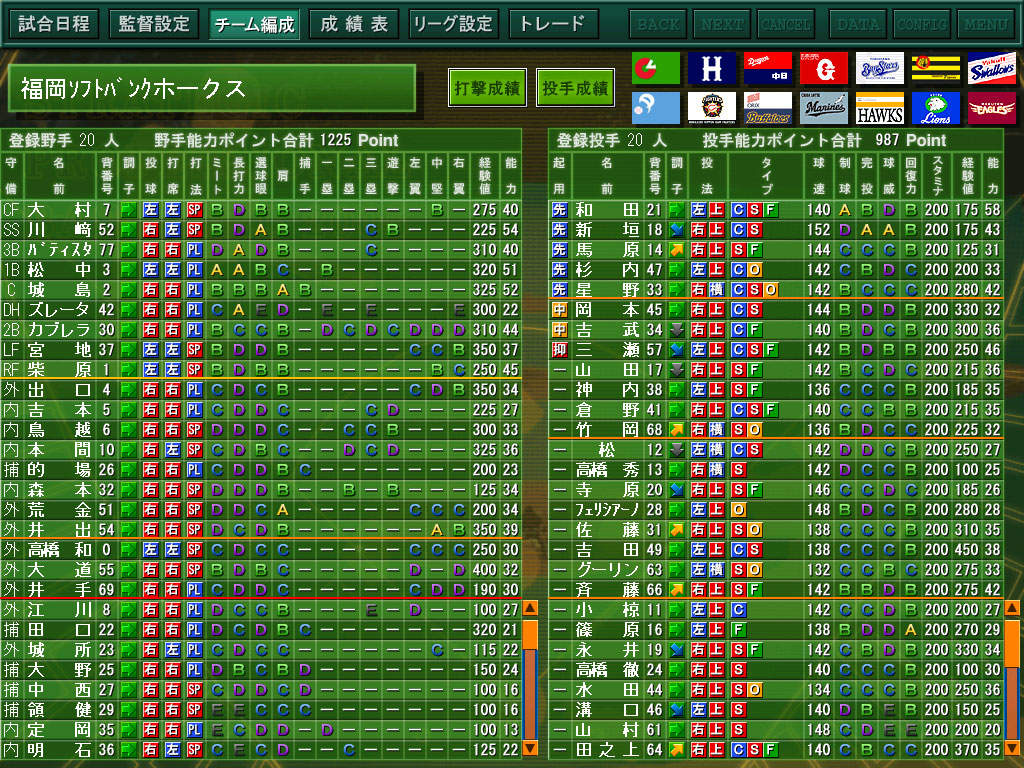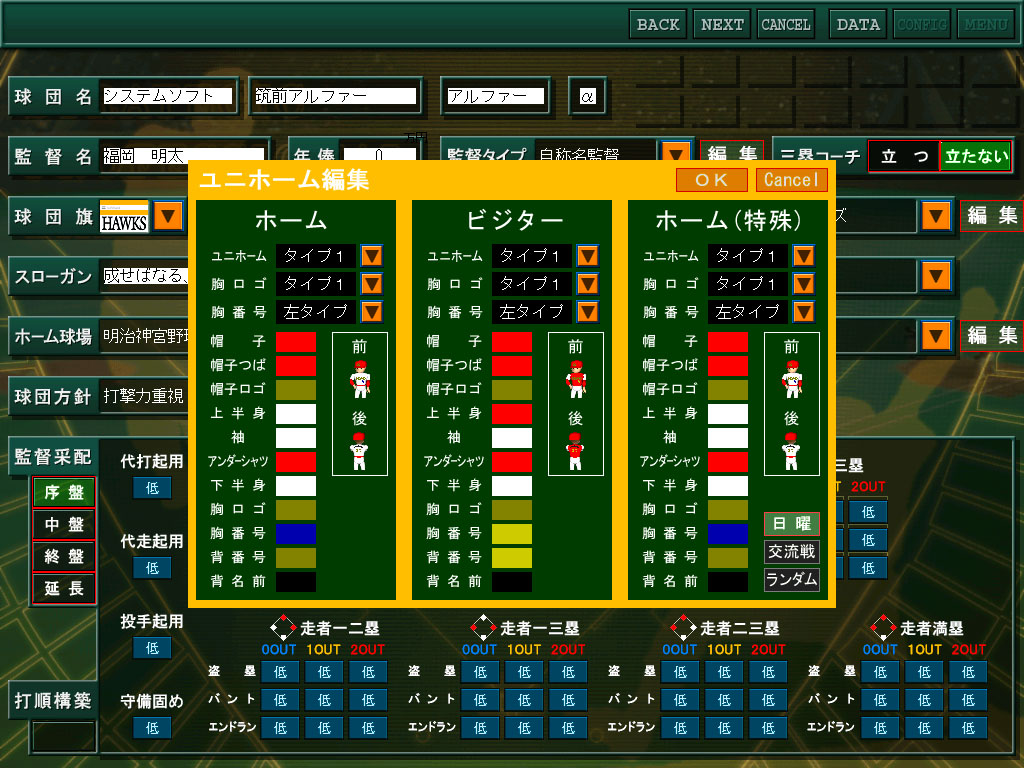 既存の球団データをベースにしたチームエディットでなく,一からオリジナルチームを作成できる「チーム編集モード」が導入されるのも大きな改良点といえよう。前作同様,オリジナルのユニホームや球団マークのエディットが可能なのはもちろん,さらに今作では応援道具の「メガホン」や「球団旗」もエディット可能になるという。また,前作「戦略プロ野球2004」で作成したチームデータを「コンバートする機能」も搭載予定だ。 「殿堂」ルールも,本作で導入される新機軸。「安打数210本」「本塁打数55本」など,公式戦モードで各部門の日本記録を更新した場合,そのシーズンの「シーズン記録」が丸ごと「殿堂」に登録される。試合日程表や成績表,新聞画面が見られるだけでなく「VTRモード」で個々の試合も再現可能となっている。