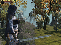 本作の特徴はキャラクターの攻撃アクションにあるようで,「Muti-Point Melee System」と名づけられたシステムには,"武器の振りをプレイヤーがダイレクトに操作する"という説明がなされている(実際のところはよく分からないのだが,マウスの動きに合わせてキャラクターが剣を振る……という意味ではないだろうか)。 またマルチプレイ時には,NPCやほかのプレイヤーとフォーメーションを組んで戦ったりもできる。ギルドを結成して敵の城を攻めたりもできるようなので,ある程度規模の大きなPvPも楽しめるようだ。