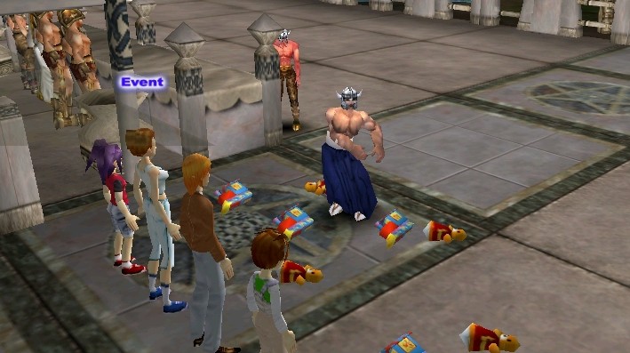 ■「失われたおもちゃを探せ!」 ストーリー(原文ママ): 遠い南の星の大豪邸に住むゴールデン一家は宇宙を駆け巡る旅行をしていた。 ある日いつものように、一家は前回立ち寄った惑星の楽しかった思い出や、買ってきた書物やアクセサリーを見ながら談笑をしていた。 すると突然強い衝撃と共に船内に警報が流れた。どうやら本船に小惑星の一部があたり後部を損傷したようだ。慌しくしている船員を横目に一家は何事もなかったように談笑を続けていた。だが、船員から損傷した部分が倉庫で、倉庫にあったおもちゃが近くの惑星に流失していると報告を受けると、子供達は泣き出し、それをみた婦人はヒステリックに怒り出した。 こうなっては誰にも止められないと一家の主は急遽その惑星に降りておもちゃを探す事にした。 そう、その惑星の名前は「ニューアース」という惑星であった・・・ 開催日時:4月27日(水)定期メンテナンス後(15時) 〜 5月6日(金)定期メンテナンス(14時)まで 開催場所:プレアデス,オリオン,アンドロメダサーバーの全域 内容:すべてのモンスターが一定確率でドロップする「かわいいおもちゃ」か,モンスター化したおもちゃが一定確率でドロップする「高級おもちゃ」を,ラグラミアにいる"ゴールデン一家"(座標685,768)に渡すと,一定確率でさまざまなアイテムをお礼としてもらえる。渡すおもちゃの数が多いほど,お礼のアイテムをもらえる確率が上がる。なおゴールデン一家は4人いるが,渡す相手によってアイテムや確率が変動することはない。