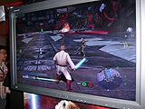 「映画最新作 エピソード3の要素の追加」は,さまざまな形で行われるようだ。ゲームに登場するクローントルーパーたちのデザインはエピソード3に準拠し,ステージもエピソード3に登場した惑星や施設が用意されるようだ。 今回見ることができたのは宇宙施設のようなステージであり,このステージでアンロックできるジェダイはオビ=ワン・ケノービだ。オビ=ワンはダース・ベイダーと違って非常に機動力の高いキャラクターとなっている。使用できるフォースは敵を手元に引き寄せる「プル」。ステージの終盤では,エピソード3の重要キャラクター グリーヴァス将軍が何本ものライトセイバーを持ってオビ=ワンに襲いかかってくる。その対決はスターウォーズに少しでも興味がある人ならば,気を引かれずにいられないシーンとなっていた。