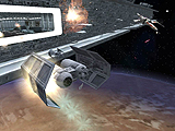 最後に「スペースコンバットステージの実装」について。前作には室内や地上をテーマとしたステージしか存在しなかったが,今作では宇宙をX-WingやTIEファイターで飛び回れる。今回見たステージは,それぞれの陣営が初期のリスポーン地点でもある宇宙艦を奪い合うというマップ構成となっていた。戦闘機に乗って,こちらに攻めてくる敵戦闘機を集中的に狙うような戦いもできれば,機を敵艦へと乗り入れて,内部の破壊を狙うこともできる。宇宙艦への着艦はもちろんシームレスに行われる。船内と船外が同一のスケールで表現されているので,画面からはかなりの臨場感を感じることができた。