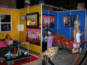 E3会場の一つであるSouthホールの一角,シングルズ2のパブリッシャであるDeep Silver(ちなみに開発元はドイツのROTOBEE)ブースの一方の壁にはモニターがずらりと並び,同社が扱うタイトルを観客に紹介していた。しかしそこに展示されていたのは,いずれもPCをメインのプラットフォームとするゲームばかりで,次世代コンシューマ機へのシフト強化を感じさせる大手メーカーの展示とはちょっと異なり,個人的に応援したいような気分にさせてくれる。 そして,その数多いタイトルの中で,やはり話題の中心といえば,このシングルズ2なのだ。しかも,ソフト展示だけでなく,ブースの入り口付近に即席の部屋が作られ,そこにベッドや家具が置かれ,さらには,その部屋で必要以上にくつろいだ薄着の若い女性が暮らしているという「リアル・シングルズ・ルーム」によっても本作のパブリシティが行われていたのである(写真参照)。まさに筆者を含むシングルズファンのツボを鋭く突く憎い演出といえ,あんまり見とれて重要な取材に遅刻した,というのは偉い人に知れると大ごとなので,ここだけの秘密にしていただきたい。