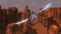 PvPアリーナでは,主人公チームが勝利する。ほかのプレイヤーに喝采を浴びている3人だったが,一人のダークエルフが周囲を巻き込んでの攻撃を仕掛けてきた。このダークエルフは実は銀色のドラゴン(Desrt of Roを夜間支配している銀の雄ドラゴンという設定だ)で,3人の主人公たちは先ほどよりも窮地に立たされてしまう。この後の展開には新要素が含まれていないので,ここでは割愛する。最終的にどのような結末となるかは,自分の目で確かめてほしい。