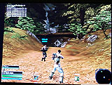 本作には"ミッション"と"バトルフィールド"という2種類のモードがあり,前者はスクリプトで記述された目標達成タイプのモード。後者は人間 vs. エイリアンの大規模戦闘(数十人のプレイヤーと数百人のNPCが入り乱れるとのこと)を行う,本作のメインフィーチャーの一つとなるモードだ。 ミッションは,基地内にいるNPCに話しかけることで受けることができ,難度にも変化するものの,ほとんどが30分程度でクリアできるようだ。デモプレイ時では,「Predatorを4匹倒せ」(これは目的を簡潔に表現したもの)というミッションを行ったが,初めてのプレイにも関わらず30分強でクリアできた。 そこで気がついたのは,2004年バージョンでは,一つのミッションをクリアするまでにパズル的なトラップを解除したり,細い通路を進んでいったりして,既存のRPGのミッションをやっている感じだった。しかし,2005年バージョンではそのあたりの"ゲーム進行を止めやすい要素"が減り,比較的純粋に戦闘を楽しめるようになっているようだ。 バトルフィールドでは,数十人が迫り来るエイリアンと戦うことになるが,テレポートなどで自分が望む地域へと簡単に移動できる。仲間と合流するときだけでなく,倒されたとき(Hospitalから再スタートとなる)も短時間で復帰できるのが嬉しい。