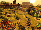 ParaWorldのゲームシステムは,「Warcraft III」とよく似ている印象を受ける。ヒーローユニットを活用し,マネージメントよりも戦闘や移動に費やす時間が圧倒的に多いからだ。なおSunflower社では,"Army Controller"と呼ばれる新しい操作体系を確立したとしているが,実際に触ってみると,すべてマウスとインタフェース左側のパネルを使ってこなせるくらいで,これといってほかのRTSと大きく異なる点は見つけられなかった。 ドイツの開発会社らしくアートワークは秀逸で,武装化した恐竜達のキャラクターモデルや水平線の様子,岸辺に打ち寄せる波などが細かく描き込まれている。カメラは目一杯ズームインでき,動物ユニットに複数の人間ユニットが搭乗していたり,樹木が風に揺れていたりする場面まで,ハッキリと映し出される。全体的には明るい色調で,飼育された恐竜達にはボディペイントをつけることも可能になっており,前世代的なRTSでしばしば感じられた"地味さ"はどこにもなかった。