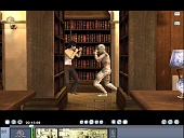 本作における最大の特徴といえば,とにもかくにも「実際に映画が作れてしまう」という部分。とはいえ,それが小難しい操作であってはエデュケーションソフトとしてはともかく,"ゲーム"としては失敗になってしまう。そのため本作では映像の作成自体はかなりの簡便化が図られており,ストーリーやセット,モーションなどはあらかじめ用意された細かいパーツ単位のものを使い,プレイヤーはそれらを"組み合わせていく"形になる。 面白いのは,演技する俳優たちの行動結果をスライドバー一つでリアルタイムに変化させていけるところで,例えば,一対一のカンフーアクションシーンを撮影中の場合,画面の下に表示されるバーを操作することで,片方がもう片方を一方的にやっつけるシーンにできたり,あるいは互角の戦いが繰り広げられるシーンにできたりする。スライドバーを左右させることで,押されながらも最後に大逆転! といったシーンが簡単に作れてしまうのは,非常に面白い試み。3Dキャラクターを使った映像作成というと,昔マイクロソフトが販売していた「3D Movie Maker」などを連想してしまうが,インタフェースの洗練度やゲーム的な面白味という部分を見る限りでは,Moviesはより多くの人に楽しめる内容になりそうだ。