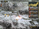 信長の野望シリーズの華,合戦シーンも当然見せてもらった。戦闘システムは,部隊が出動中でも常に命令を変更できたり,技(戦法)を任意に発動できたり,その戦法が連鎖したりといった微妙な違いはあるものの,イメージとしては「三國志IX」のそれに近いといえる。