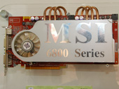 写真右:MSIの「NX6800 Ultra Dual GPU」。こちらは1グラフィックスチップあたり512MBものグラフィックスメモリを搭載する。ASUSTeK ComputerがEN6800ULTRA DUAL/2DT/512Mを「世界最強」と言っていたのを聞いたMSIの担当者は「向こうが世界最強ならば,うちは世界最強に加えて世界最大容量でもある」と豪語していた。やはり受注生産になるようだ