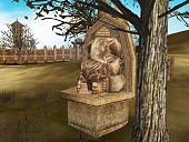 右:物語に深くかかわりのありそうなガネーシャ像。村の繁栄を願って作られたということなのだが……。