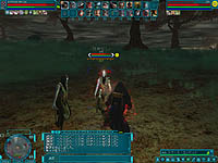 さて,「スター・ウォーズ ギャラクシーズ 公式ガイドブック」(詳細は「こちら」)の制作チームが手がけているため,ついつい濃い話になりがちな本連載だが,今回は新人プレイヤーにも将来役に立つ(かもしれない),メレー系の戦闘職についてお話ししようと思う。 コンバット・アップグレード(CU)で,レンジが強化されたという話は前回(「こちら」)紹介したとおり。ではメレーはどうなったのかというと,CU以前はメレー職,とくにTKA(テラス・カシ・アーティスト)の攻撃力はズバ抜けて高かったのだが,CUによってその異常なまでの攻撃力に調整が入り,攻撃力に関していえば,なぜかレンジ職のほうが上になってしまったのだ。 そのため,経験値稼ぎの狩りPTに参加すると,レンジ職のキャラクターがその長い射程距離と強力な攻撃力で,メレープレイヤーが手を出す前にクリーチャーを倒してしまう,などという悲しい光景がよく見られる。