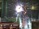 GEのキモといえば,やはりMCC(Multi Character Control)システムによる戦闘だろう。さすがにここは練り込まれているらしく,スピード感,ザックリ感,効果音,エフェクト,キャラクターモーションといったすべての点で及第点を大きく上回る。はっきりいってこの部分さえうまく出来ていれば,ゲームとしてはとりあえず楽しめるはずなので,戦闘のプレイフィールの良さには一安心といったところだ。