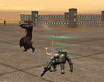 相手がこちらの存在に気づく前に,問答無用の先制攻撃でKD(ノックダウン)! 身動き取れなくなったところを情け無用のレンジ攻撃連射! ははは,油断大敵という言葉をたっぷりと教えてあげよう! ……ところが,先制攻撃は成功したものの,相手にあまりダメージを与えられない。どうやら相手は戦闘に備え,バフを十分にかけていたようだ。なかなかのやり手である(当然か)。
