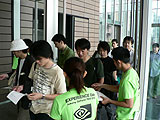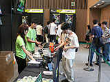 各メーカーのオリジナルPCを展示。すべてのPCがGeForce 7800 GTXを搭載しており,全体的に壮観な風景だ。もちろん,一般のハードウェアファンにとっては,実機を前にハードが調査できるまたとないチャンスということで,メーカーのデモ担当者は常に質問責めに