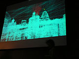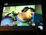 【上段】やはり来場者一番のお目当ては「Unreal Tournament 2007」だろうか。見られたのはごくごく限られたシーンだったが,Unreal Engine 3の技術解説はかなり見物。ピクセルシェーダを用いて,いかにグラフィックスの精度を落とさずに少ない頂点数を実現するか,という部分の説明に,多くの時間が費やされた。 【下段】エバークエストIIの解説には,スクウェア・エニックスのSage Sundi氏が登場