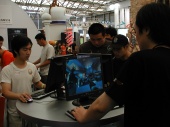 天源4591は,中国産のSF調MMOFPSだ。会場で展示されていたゲームデモは,なにかよく分からない空中に浮いたクリスタルのようなターゲットを制限時間内にいくつ撃ち落とせるかを競うミニゲームで,基本的な動作を確認する程度のもの。それを見る限りは,昨今のFPSとしてはちょっとしょぼいなというのが率直な印象ではあった。デモムービーを見てみると,物理演算やプログラマブルシェーダなどもそれなりに使った画面だが,それもまだまだ発展途上という感じではある。 このゲームの特徴の一つ目は,MMOであるということ。FPSではネットワーク対応は当たり前のことだが,サーバーの負荷やネットワークの応答性能などからしてMMOでの展開となるとかなり難しい。Battlefield 2で64人対戦というところまでやっているのだが,もちろんこれくらいではMMOとはいえない。PlanetSideくらいだろうか。わりとなんでもかんでもMMOゲームに展開してきた韓国勢でもMMOのFPSというのはほとんどない。 二つ目の特徴は,単純なFPSではないということ。話を聞くと,NPCの部下を持ったり,基地や工場を作ったりできるという。 部下? 何人くらい部下を持てるのかと聞くと,なにやら申し訳なさそうに,現在は300人だが将来的にはもっと増やせるとのこと。 300人? さらに1サーバーには何人くらい同時接続できるのかと聞くと,現在は2000人だが,1万人にする予定とのこと。えーと,最大300万キャラクター……。韓国の人も大勢で戦闘するのが好きな人たちだと思っていたのだが,中国の人はもっと好きみたいだというのは,これ以外にもいろいろ見て回っての印象だ。映画などで平原を埋め尽くすようなエキストラを動員して戦闘シーンを描くというのは(CG以外では)いまや中国くらいでしかできない芸当だが,そういったものの印象が強いのかもしれない。 ということで,このゲームが最終的にどのような姿で現れるのかは,正直いってちょっと想像がつかない。しかし,現在のFPSはリアルな画面を追求するのが主流で,ゲーム性という点ではマンネリ感があるのも事実。中国産のこのゲームは荒削りだが,FPSでガンガン撃ち合いつつ,ストラテジー要素を加味して,MMOで戦う。もちろんビークルも出てくる。きっとRPG要素もあるだろう。なんとも破天荒なてんこ盛り具合である。こんなものが実現したらFPS界への一石としてどんな波紋を広げるだろうか? かなり大変そうなゲームだが,正式サービスは年末でβテストは8月から始まるという。本当に出来上がるのか,いったいどういう具合になるのか,注目していきたい。 (aueki)