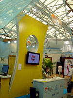 例年ChinaJoyに韓国ゲームデベロッパーを集めて出展してきた韓国ゲーム産業開発院は今年(2005年)出展せず,ソウル産業通商振興院とソフトウェア振興院が共同してSEOUL ANIMATION CENTERとして計13社のゲームを出品していた。 ブースのスペースが狭かったこともあり, 実際にプレイできたのは3タイトルのみ。その中で中国プレイヤーたちの目を一番強く惹き付けたのが,以前「こちら」の記事でライブドアによる日本展開に触れた,3D飛行シューテングオンラインゲーム「Space Cowboy Online」である。