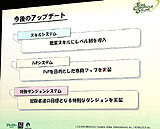 クローズドβテスターが気にしているであろう,エリア拡張については,明確にオープンβテスト時での実装とは言及されなかった。ストーリーの進展に合わせて随時アップデートしていくということらしい。なお,現在の三つのダンジョンについては,ダンジョンへ行く目的が希薄ということなどを理由に,リニューアルも視野に入っているとのことだ。今後のアップデートでは,特殊ダンジョンと呼ばれる,明確な目標/目的を持って冒険するダンジョンも追加されるとのことなので,期待できそうだ。