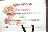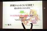 また,マーケティング面について触れておくと,まずECOのゲームジャンルは,"ハートフルオンラインRPG"に決定したとのこと。いままで大作オンラインRPGとしか謳っていなかったのは,こういうオリジナル要素を付けるための布石だったのかもしれない。本作のマーケティングプロデューサーの小島氏によると,このジャンル名はほかの多くのタイトルが競争世界を描いていることに対してのもので,誰かのためにがんばるような共生世界を描いた本作にはピッタリとのことだ。ゲームシステムでも"憑依"というユニークなシステムがあるので,うまく表しているともいえるだろう。