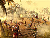 画面は,Sunflowerらしい淡い色使いと細かな描写が独特で,このゲームの魅力的な要素の一つになっている。リードデザイナーのThomas Langhaski(トマス・ランガスキ)氏の話によると,グラフィックスエンジンにリアルタイムシャドウの効果をインプリメント中ということだったが,現在の時点でも十分に美しい。 ブロントサウルスが足踏みすれば,周囲の樹木が一斉になぎ倒されてしまうといったように,視覚的なインパクトも十分だ。なにより,オークや戦車が出てこないRTSというだけでも新鮮である。
