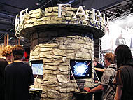今回GC 2005で展示されていたPCバージョンは,もうほとんど完成しているように見えた。もちろん実際にプレイできる状態での展示となっていたので,実際に触れてみて分かったPC版の新要素について紹介しよう。 画面を一見して気がつくのは,ユーザーインタフェースが改良されているということだ。とくに,いかにもPCゲームらしい,フルキーの1から0に対応したホットバーの追加は,プレイアビリティを大きく向上させている。スペルやアイテムの登録は,もちろんドラッグ&ドロップで行えた。