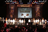 写真下段右:司会がトークでもたせている間も,壇上でセッティングに余念のない参加ギルドの面々