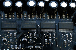 4個並んだ小型のチップは,PC上で扱われるデジタルデータをアナログのサウンドデータに変換するD/A(Digital to Analog)コンバータ。一般的なサウンドカードでは,7.1ch(や5.1ch)対応のD/Aコンバータ1個でまかなうのに対し,SB X-Fi Elite Proでは最新世代の中高級オーディオ機器でもよく採用されているCirrus Logicの2ch用D/Aコンバータ「CS4398」を2chごとに1個使うという贅沢な構成である。