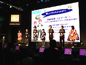 壇上にはヨーグルティングの宣伝担当 古志野 史嗣氏,コンテンツ開発部の鳥山主税氏が登場し,近々に導入が予定されているナビゲートキャラクター「学級委員」について,また,10月,11月,12月にそれぞれ予定されているアップデート/追加要素について説明した。 前述のようにヨーグルティングは現在オープンβサービス中だが,今後キャラクターデータのワイプ(消去)なしに正式サービスまでデータを持ち越せるかどうかは,参加者にとって気になるところ。今回これに関しては,「引き継がれます!」という明確なアナウンスがなされた。今後安心してプレイ進められる点で,現在参加している人,これから参加を考えている人には朗報といえよう。 続いて,近々に導入が予定されている"新しいクラスメイト",「学級委員」についての説明があった。これは,既存の「風紀委員」(GMキャラクター)に加えて,ゲームのナビゲート役,イベントの盛り上げ役を務めるキャラクター。学校法人 東放学園 東京アナウンス学院 放送声優科の生徒有志が務め,ステージでは彼ら/彼女らの簡単な紹介があった。