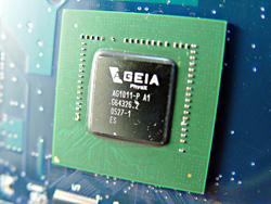 搭載するメモリチップはSamsung Electronics製のGDDR3 SDRAM「K4J5532JQF-GC20」。カード背面の状態が不明なので断言はできないものの,片面実装とすると4個で容量は128MBになる。チップのスペック上,動作クロックは最高1GHz(500MHz DDR)になるはずだ。 メモリスペックはちょうどGeForce 6600 GTクラス。「こちら」の記事でAGEIA Technologiesが提示した「予価250〜300ドル」というのは,いわゆる初物価格になることからすればほぼ妥当,といったところだろうか。もちろん,チップの価格が出ていない以上,本当に妥当かどうかの結論はまだ出せないが。