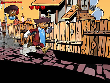本作でプレイヤーは,三銃士の一人ポルトスとなって,誘拐された仲間のアラミス,アトス,ダルタニャンを救うべく大活躍することになる。背景がアニメのようなグラフィックスであるのに,キャラクターはフル3Dというマッチングの妙が特徴的で,基本的に横スクロールで進みながら障害を乗り越え,敵を倒しステージクリアを目指す。