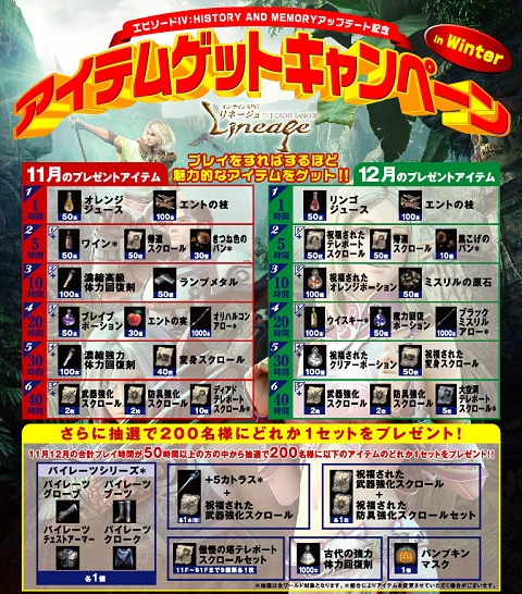 エヌ・シー・ジャパンは,全国1600店の「リネージュ」公認ネットカフェで,「アイテムゲットキャンペーン in Winter」を開催する。