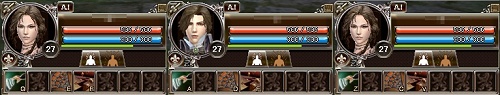 近くにあるドロップ品を拾いまくるという"ハーベストモード"をようやく覚えた頃のプレイなので,手動攻撃で多少冗長になっているが,お金のない時期には,とにかく拾いまくるハーベストモードは重宝する。 なお,指示を一人に与えるか全員に与えるかという指定が,鍵状のアイコンで設定できる。とりあえずここをロックしておいたほうが,なにかとうまく動くように感じた。ハーベストモードでも,このロックを行わないと,プレイヤーが操作するキャラクターしか拾いにいってくれないので注意。ロックしておけば,周りに落ちているものを拾いたい場合に足元をクリックすれば,各自がそれぞれ動き回って拾い集めてくれる。モンスターをクリックすると全員で攻撃してくれる。 なお,ロックした状態でも,プレイヤーが指示するキャラクター(リーダー)というのは決まっていて,それ以外の二人のキャラクターは基本的に自動攻撃を行う。実はこの自動攻撃が強力で,ポップ寸前の,まだ画面に見えてないモンスターに対して攻撃態勢に入ったり,壁の向こう側のモンスターを狙い撃ちしたり,視界内にいようがいまいが,絶えず効率の良い攻撃を繰り返すようになっている。 その点リーダーは,クリックで指示を出さないと攻撃をしない。また指示を出しても攻撃してくれないことも多く,かなりうまく動かさないと,戦力を有効活用しているとは言い難い状況となってしまう。はっきりいって,現状では手動戦闘で自動戦闘以上の効率は出せない。攻撃要員は自動戦闘で2名,メインキャラクターはヒーラーに徹するというのも,チーム構成の一つのアイデアだろう。