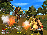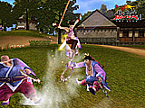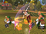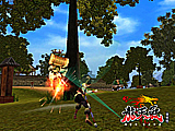 基本的にはオーソドックスな3D MMORPGのスタイルを取る本作だが,複数同時に敵を攻撃してなぎ倒していくというのは前述した通り。プレイ風景を見る限りだと,ちょっとした三国無双ライクな戦闘描写になっており,群れて襲い掛かってくる敵を,武侠ファンにはお馴染みの(?)アクロバティックな,言い換えればワイヤーアクション風味なモーションで,バッタバッタとなぎ倒してくれる。そのためモンスター(人型が多いが)自体は,常にかなりの数でマップを徘徊する形になっており,ちょっと走ると5〜10人程度の敵がワラワラと襲いかかってくる。これはこれでなかなか楽しげな雰囲気だが,あまり敵が多くなると敵キャラクターの表示が重なって分りにくくなったり,いろいろと不備が見受けられたのも正直なところ。インタフェース周りについては,今少しのブラッシュアップが必要といった雰囲気であった。 ちなみに本作の特徴である“複数に同時に攻撃”ができるという部分についてだが,そのためのとくに特別な操作が必要というワケではなく,従来のMMORPGのように敵をクリックして攻撃を仕掛けたときに,その攻撃の当たり判定が周囲にも及ぶ……といった程度でしかない。そのため,最初こそ敵をなぎ倒す動作に目を奪われるものの,慣れてくると戦闘がただの単調なハンティング作業になってしまっている点も残念である。