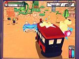 「AYA!」は各ステージを,バスを武器にモンスターを倒しながらゴールを目指すアクションゲーム(オンラインは非対応)だ。ゲームのコンセプトは,コミック的な軽いノリのテイスト(笑いの演出)とアクションゲームを融合させるというもので,いかにも気軽に楽しめそうなグラフィックスが特徴となっている。