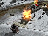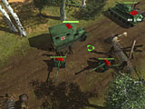 長大なスクリプトに基づいて行動する兵士は,自分が対峙している目標の性質を判断し,破壊不能と判断するや,その敵の射程外に逃れるべく行動する。また,戦車や自走砲に便乗している歩兵は,乗車が攻撃を浴びると即座に降車/展開し,手持ちの火器で反撃を開始する。そして極めつけは“降伏”だ。とうてい勝ち目のない状況に追い込まれた兵士は,敵であれ味方であれ,ときに両手を挙げて降伏し,マップから消えていく(捕虜になる,ということだろう)。従来のストラテジーゲームの兵士は,どこまでもプレイヤーの命令を守るという意味で機械のように勇敢(=無神経)だったわけだが,このゲームではある種リアルで人間くさい行動を見せてくれるのだ。