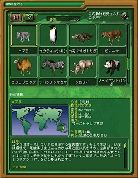園内や動物は3Dグラフィックスで描かれていて,あらゆる角度と距離から観察可能。飼育可能な動物は,コアラやジャイアントパンダ,ライオンなど比較的メジャーなものから,ガラパゴスゾウガメのような絶滅危惧種まで40種類以上。園内に設置できる来園者用施設アイテムは,200種類以上となっている。 動物の飼育や従業員教育,新しい動物の受け入れや病気の治療法などの研究,さらには広告宣伝にいたるまで,動物園経営にまつわるさまざまな要素を,いかに効率的にコントロールするかがポイントになりそうだ。