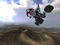 オフロードをモトクロッサーと四輪バギーで疾走するレーシングシミュレーション