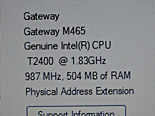 右下:Gatewayの「Gateway M465」(本製品はチップセット内蔵グラフィックスコアを使用)で,CPU表記を確認してみた。「Core」の文字はなく,「プロセッサナンバー @ 動作クロック」といった形で表記されるようだ