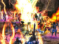 ネビア谷血戦とは,二つの国家「テモズ」と「クァナト」間で争われる戦いで,勝利した国が,貴重なアイテムをドロップする魔物が多く棲息するネビア谷を占有できる。勝利国家のプレイヤーは,有利な狩りを行えるようになるわけだ。